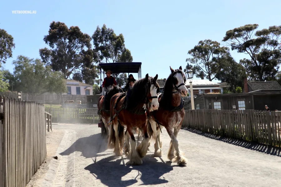 - Chiều tham quan mỏ vàng Sovereign Hill, đi tàu vào lòng đất cảm nhận cuộc sống hầm mỏ. Trải nghiệm thị trấn cổ được dựng lại 1 cách công phu với những cửa hàng thời xưa và quân lính của đế chế Anh huy hoàng nhất thế giới.